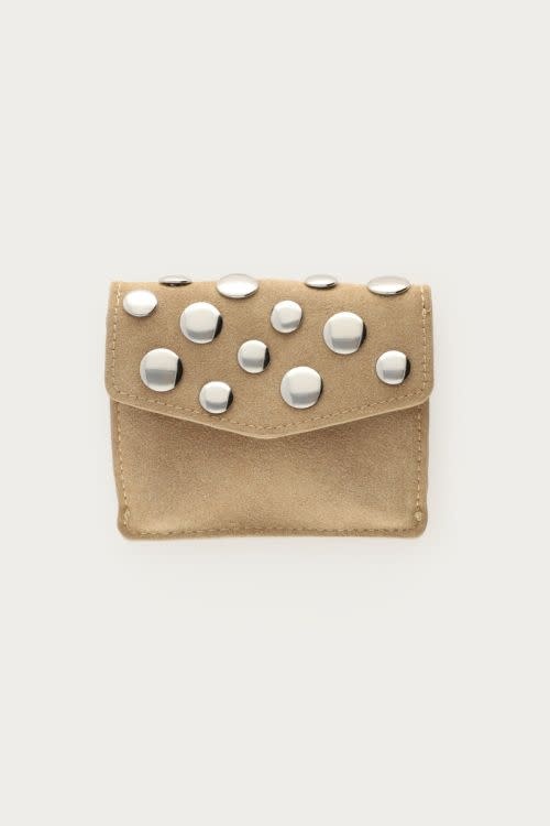 De portemonnee is gemaakt van polyester en de studs zijn gemaakt van ijzer