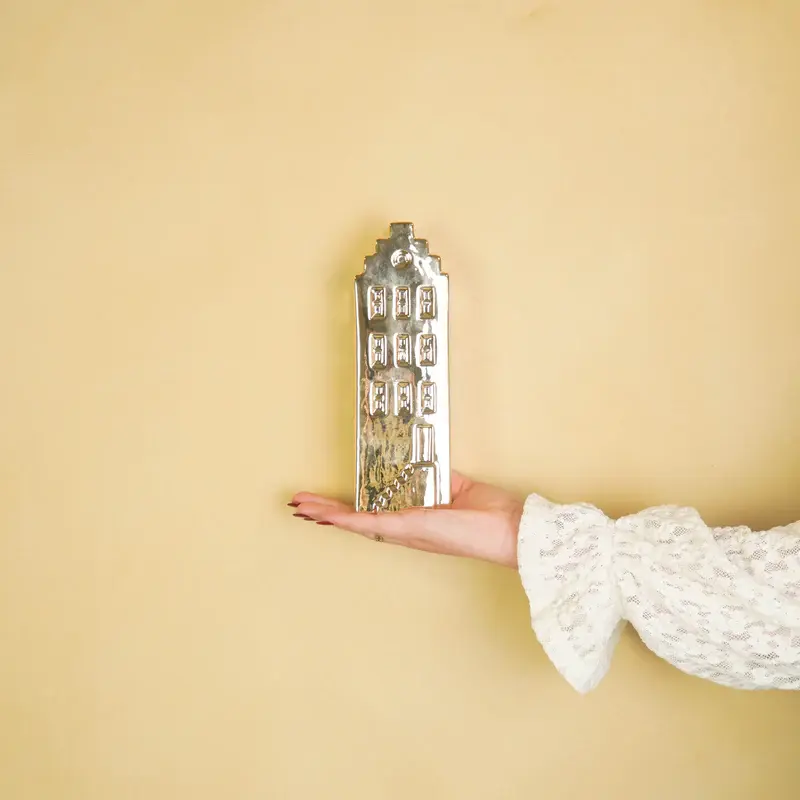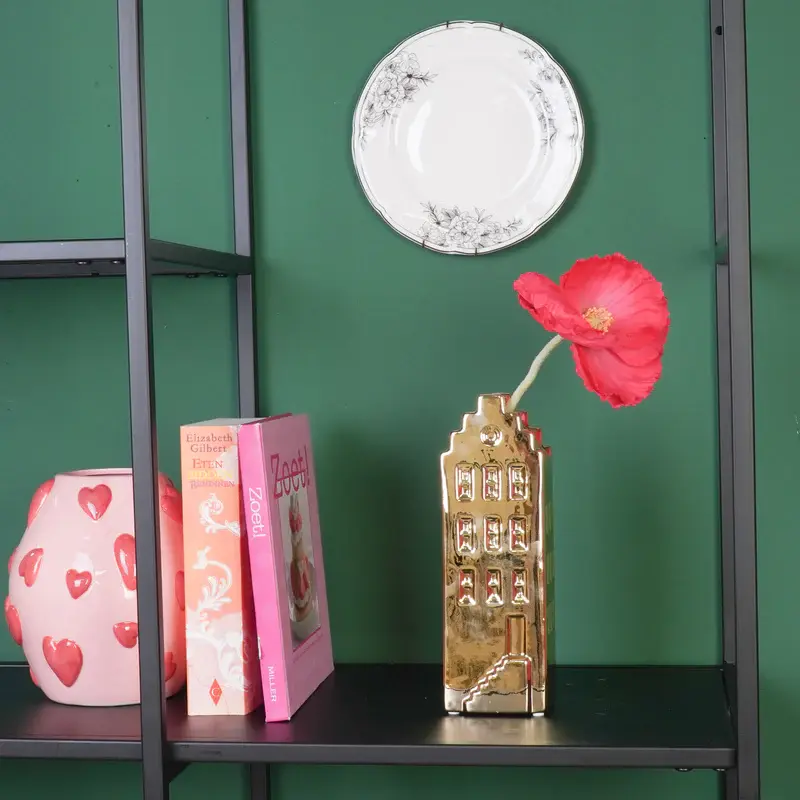 Bloemenvaas - Huis Vaas - Keramiek - Goud - 7,5x6x23 cm