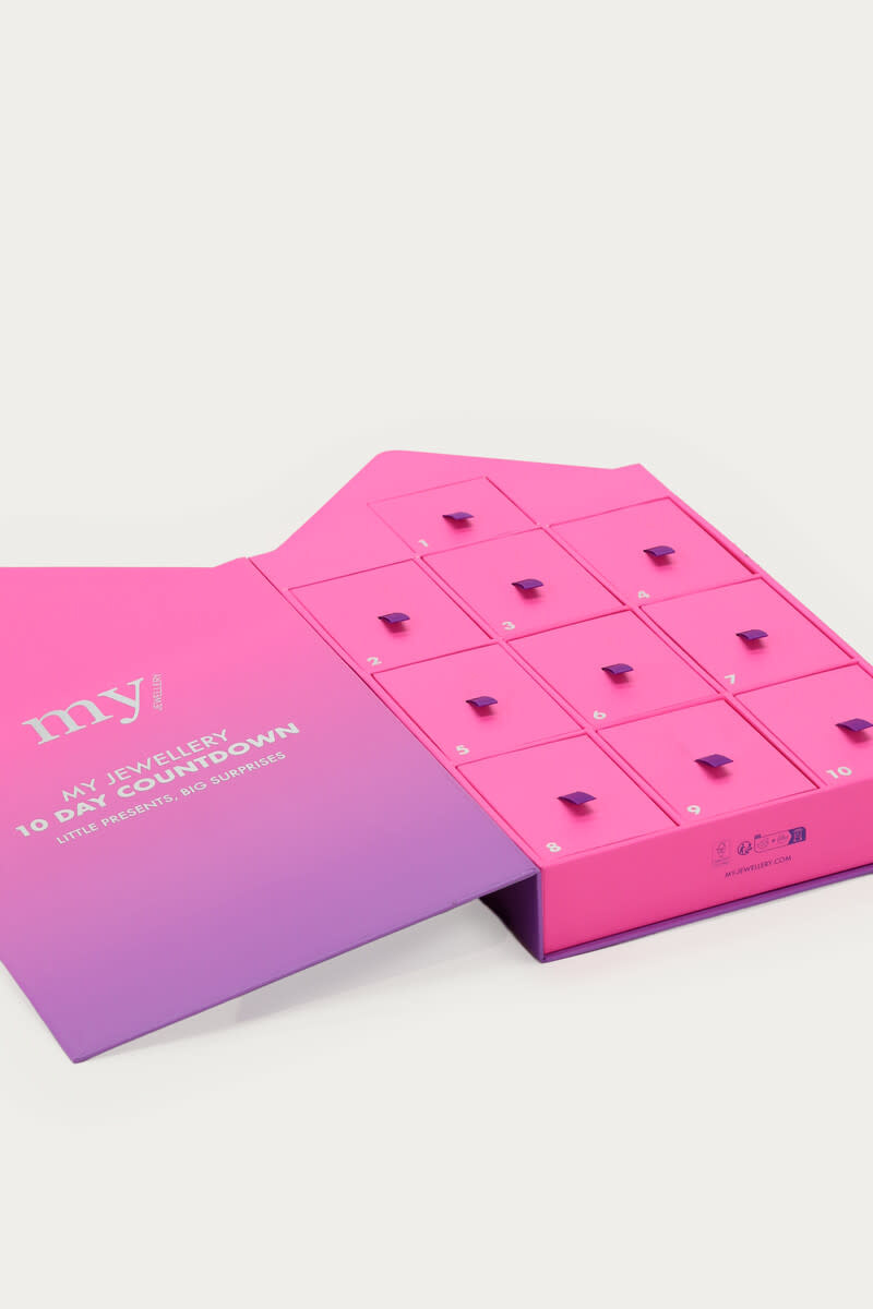 Dit is de versie met 10 cadeaus, de versie met 24 cadeaus vind je hier! Beide adventskalenders bevatten verschillende exclusieve items.