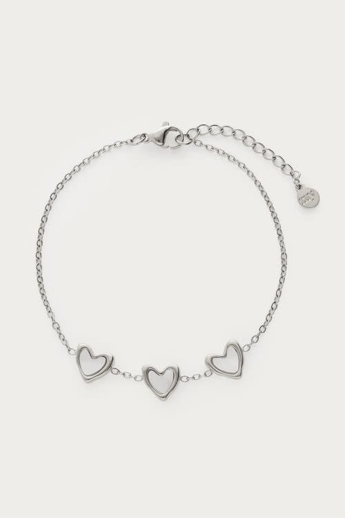 Armband met drie parelmoer hartjes Zilverkleurig