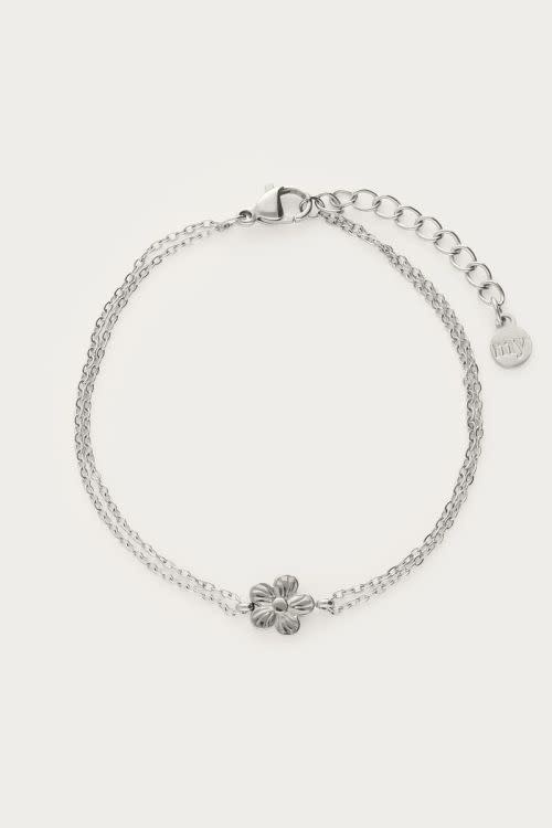 Armband met dubbele ketting & bloem Zilverkleurig