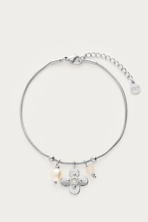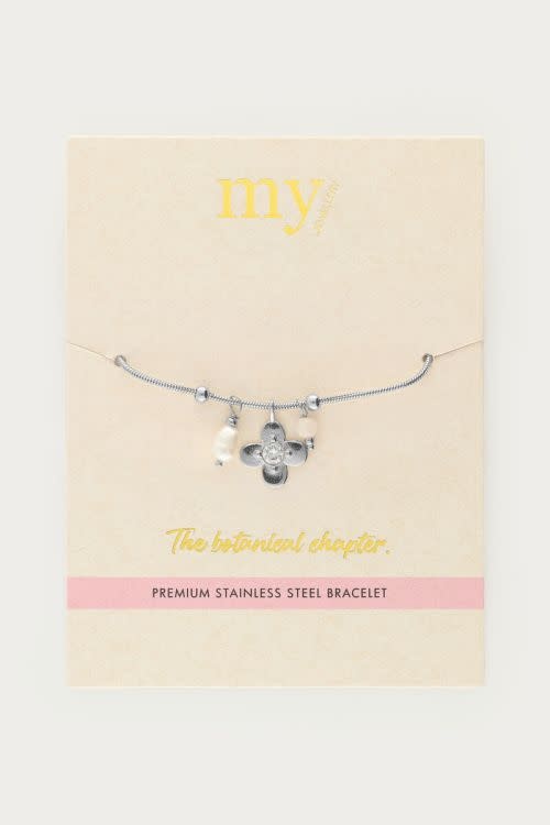 Botanical armband met bloem en strass steen zilverkleurig