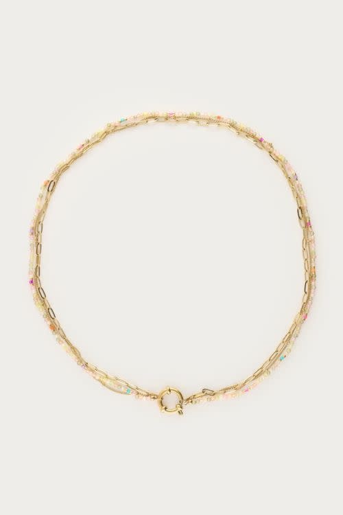 Botanical driedubbele ketting met licht groene kralen
