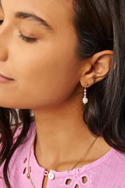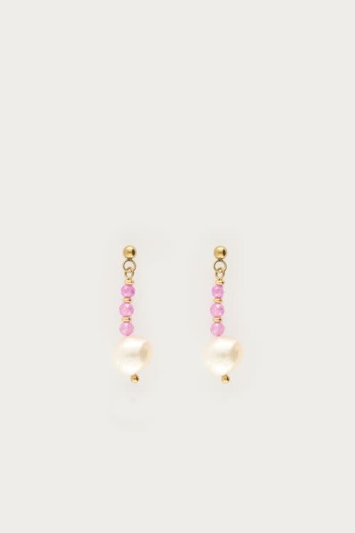 Botanical stud met roze kralen en zoetwaterparels