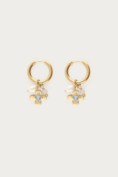 Botanical statement oorringen met bloem en strass steen