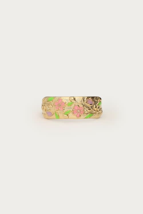 Botanical ring met roze bloemen