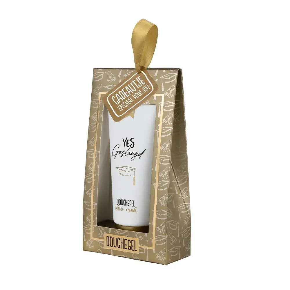 Wat een prestatie, geslaagd! Je hebt het toch maar gedaan! Een felicitatie is daarom op zijn plaats. Of het nu gaat om het behalen van een diploma, rijbewijs of certificaat, deze douchegel is daarom een passend cadeau.