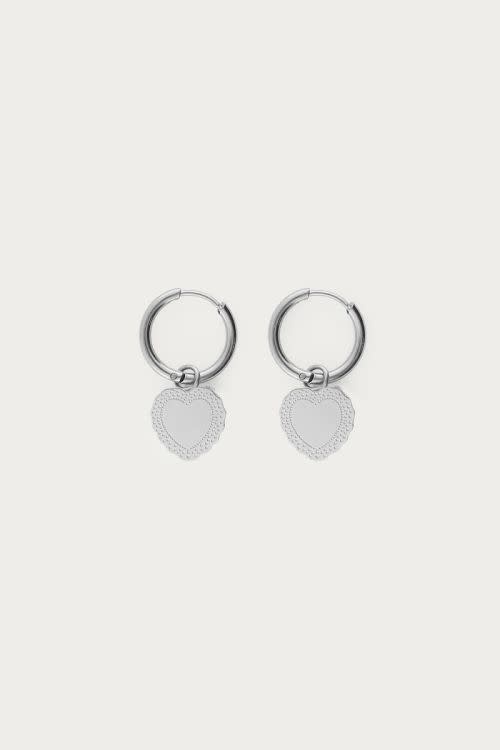Love oorringen met klein hartvormige bedel Zilverkleurig