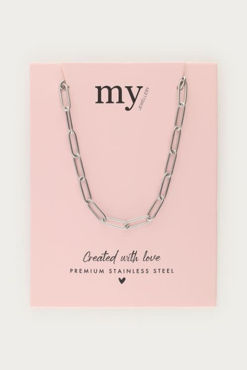 Aan verlanglijst toevoegenLove schakelketting zilver €19,99 Gemaakt van premium stainless steel dus verkleurt niet! De ketting is een middellange ketting De ketting is 42,5 cm lang & 5 cm verstelbaar Op voorraad Toevoegen aan winkelwagenInloggen voor wishlist