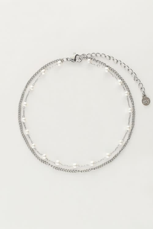 Minimalistisch dubbel enkelbandje met imitatieparels zilverkleurig