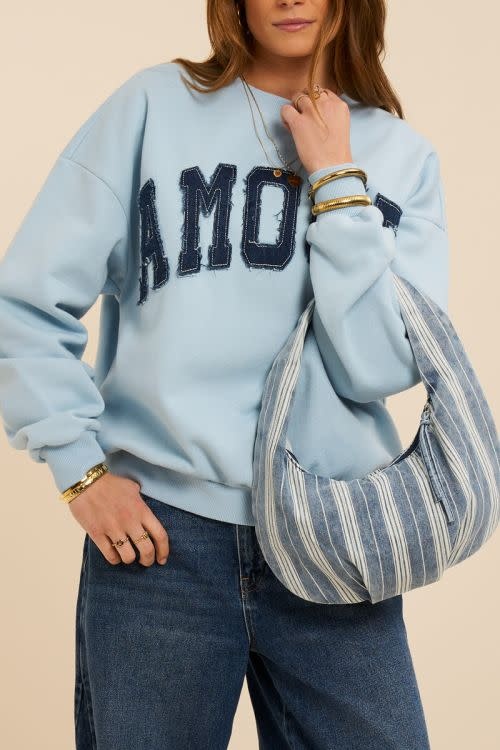 Blauwe denim schoudertas met strepen