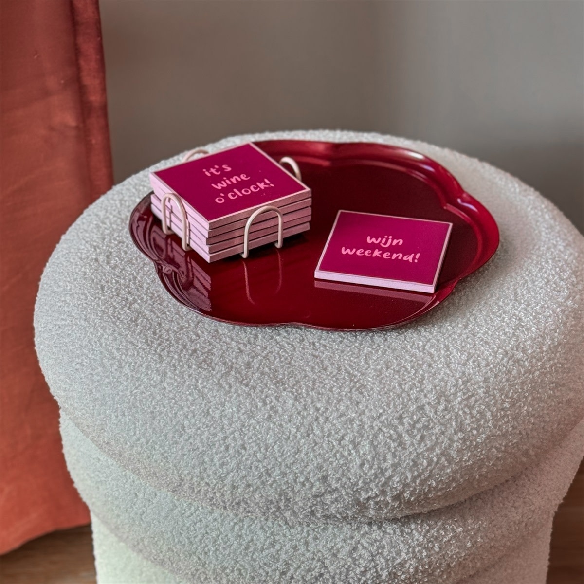 Aan verlanglijst toevoegenSet van 6 onderzetters met rekje wijn €13,95 Kleur rood Materiaal hout Merk Kolony Op voorraad Toevoegen aan winkelwagenInloggen voor wishlist