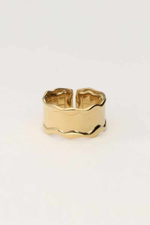 Statement ring met wave en structuur goudkleurig