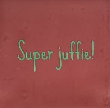 Tegeltje 'super juffie' (fijn) roze/appelgroen