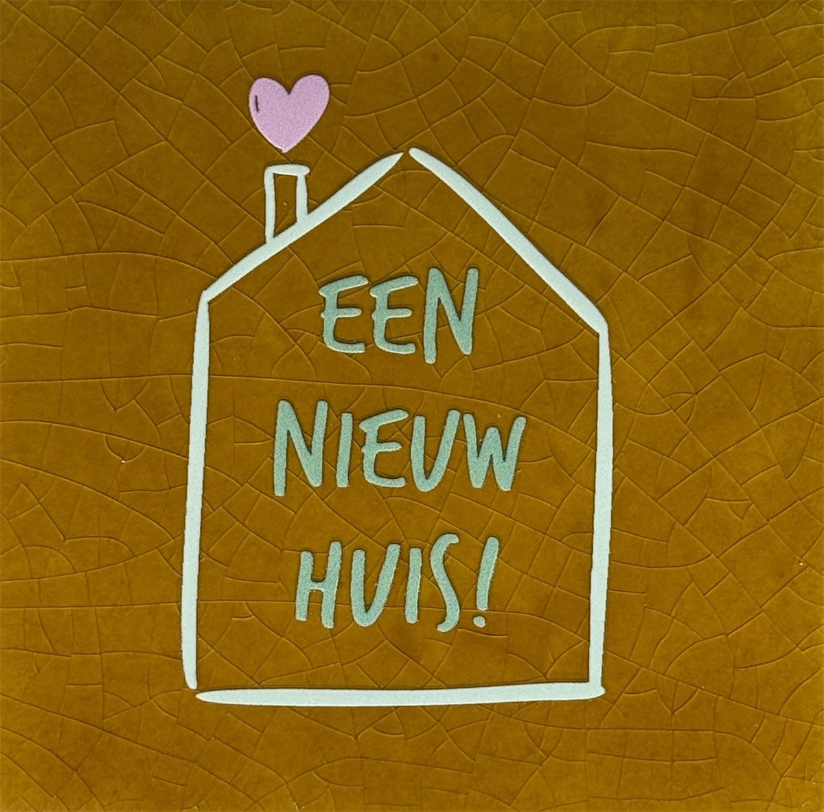 Tegeltje een nieuw huis oker/mint(lichtgroen-warmroze)