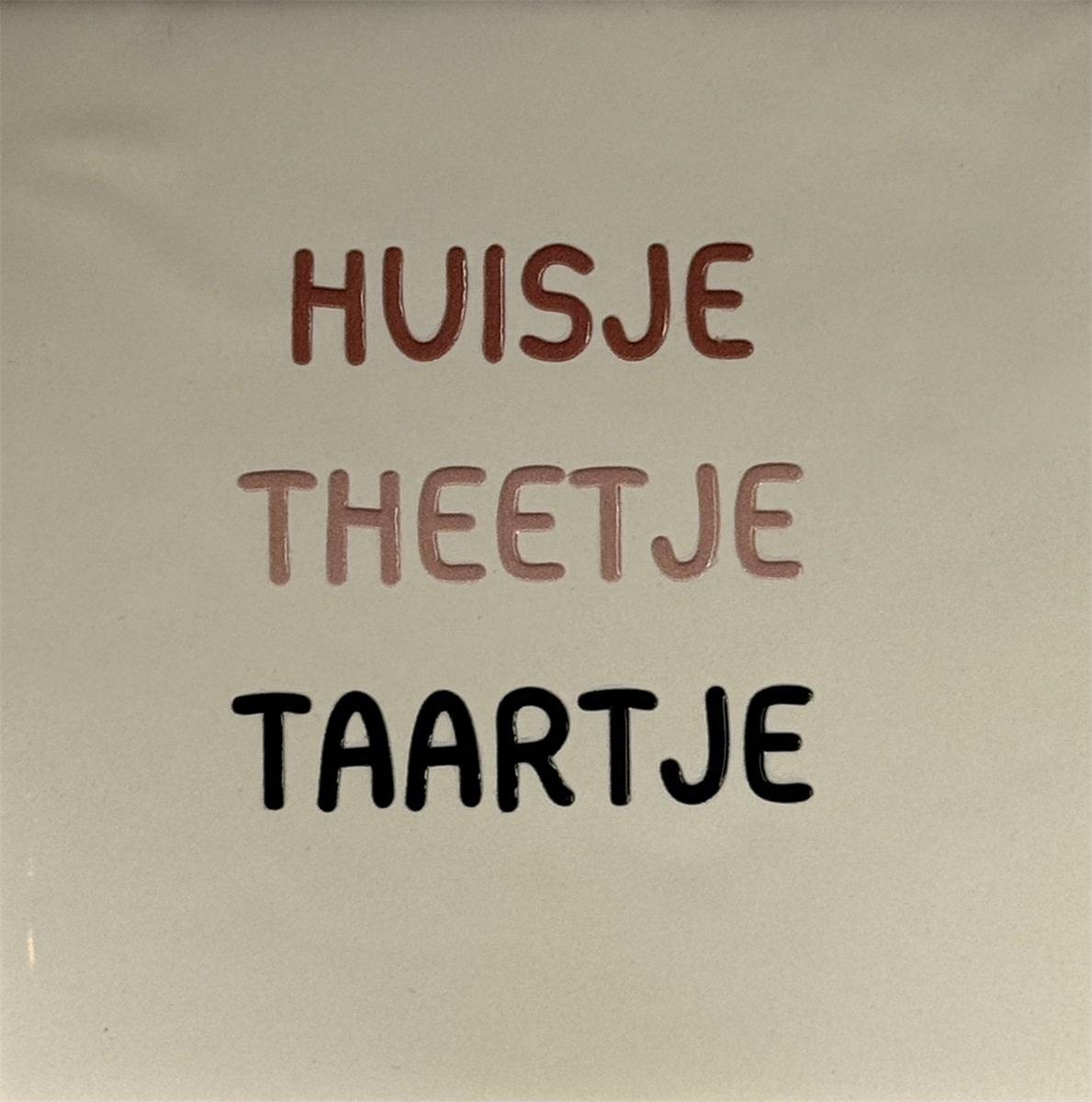 Tegeltje huisje theetje taartje nieuw creme/taupe(nude roze-zwart)