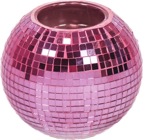 ProductomschrijvingKaarshouder - Theelichthouder - Disco - Waxinelicht - Glas - Roze - 10,5x10,5x8,5cm.