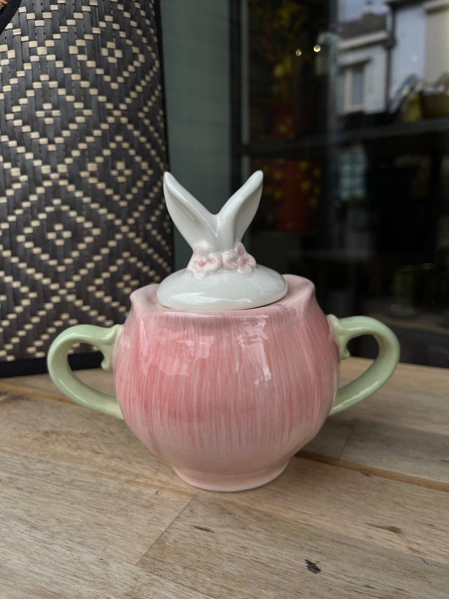 Aan verlanglijst toevoegenColmoreMug flower/bunny w/lid soft pink dolomite porcelain 18x11x15 €8,95 De mok heeft een zachte roze tint, groene handvatten en een schattige konijnenoren deksel met sierlijke bloemetjes. Op voorraad Toevoegen aan winkelwagenInloggen voor wishlist