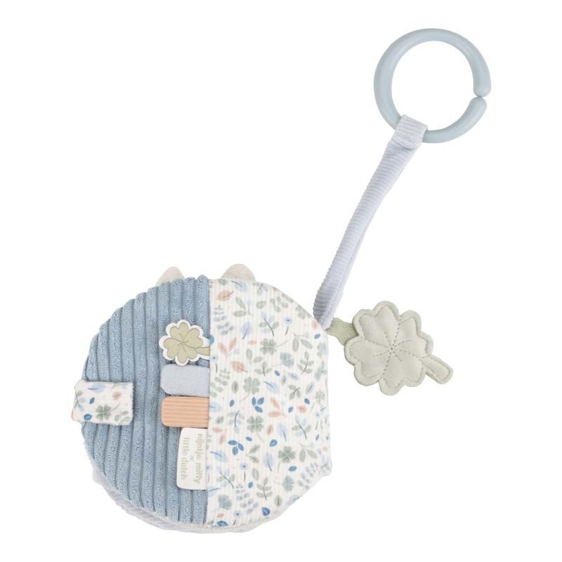 Nijntje vermaak onderweg! Dit touch & play buggyboekje in Lucky Leaves thema wordt ongetwijfeld een favoriet van je kleintje. Voorzien van leuke labels, kreukeltexturen en geluidjes, zal dit boekje de zintuigen van kinderen stimuleren. Het heeft ook een spiegeltje voor zelfontdekking en een zacht nijntje op de voorkant. Bevestig de speelgoedring aan de kinderwagen voor entertainment onderweg.