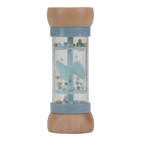 Schud en rammel! Draai de regenrammelaar om en luister naar de rustgevende druppelgeluidjes van de balletjes die van de ene naar de andere kant van de regenmaker bewegen. Het stimuleert de zintuiglijke ontwikkeling en het muzikale talent van je baby. De balletjes, vallen door kleine openingen in de buis en laten de propeller draaien, wat resulteert in een aangenaam geluid. De regenrammelaar is ontworpen voor kleine handjes en ligt lekker in de hand. De houten boven- en onderkant zijn versierd met een illustratie van een klein vosje en een paar paddenstoelen en uit de Forest Friends -collectie.