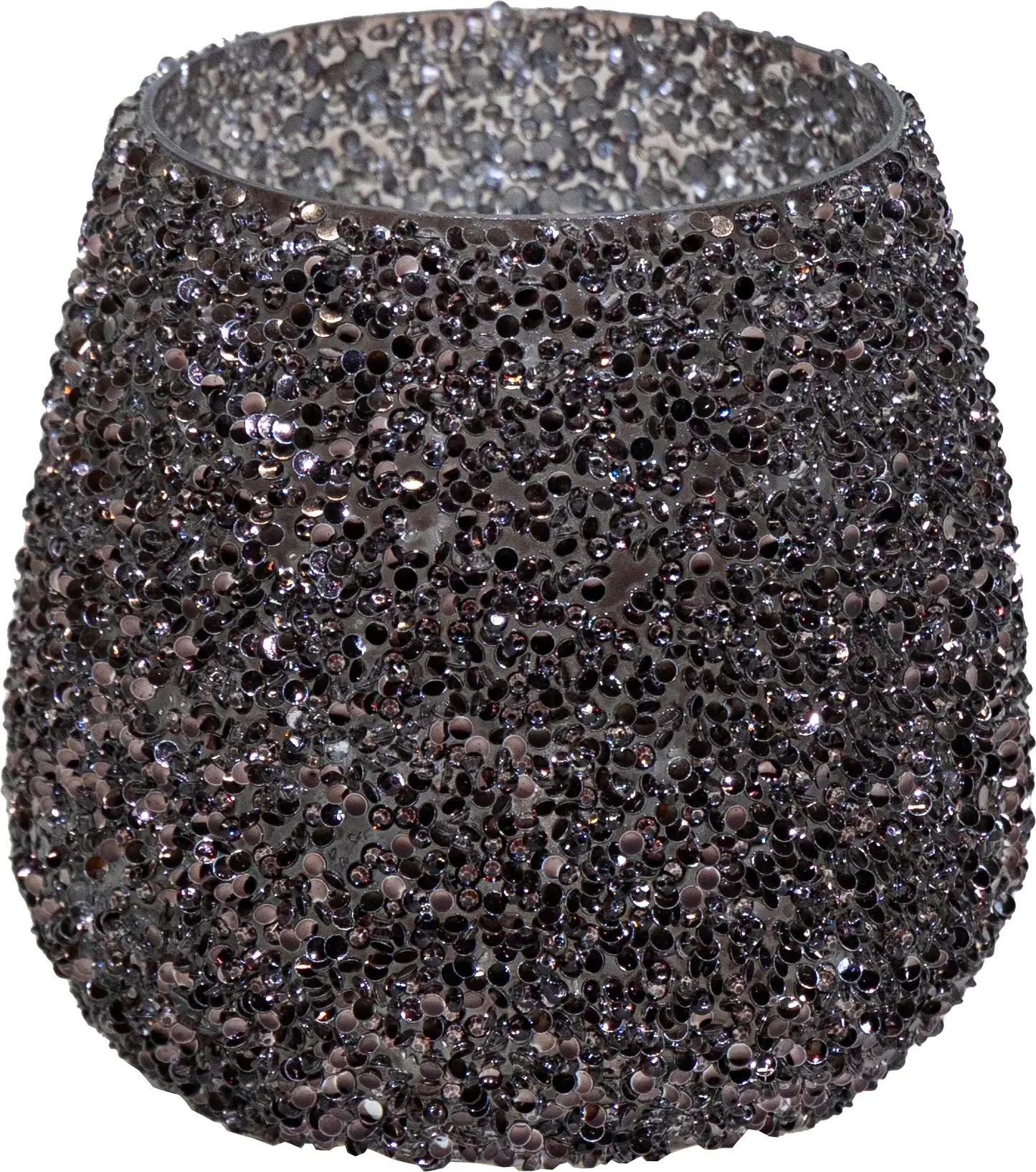 Dit glazen potje is volledig bekleed met strass steentjes en schittert dan ook prachtig in elk huis. Combineer het met een mooie plant of plaats er een theelichtje in. De diameter is 9,5 cm en de hoogte is 9 cm. Ook erg leuk om te combineren met de strass potjes in andere kleuren en maten.